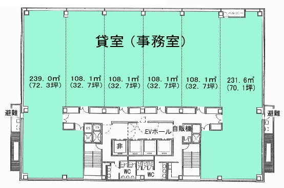 ※基準階とは、多階層ビルにおいて基準となる平面を持つ階になります。