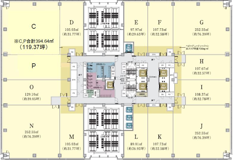 ※基準階とは、多階層ビルにおいて基準となる平面を持つ階になります。
